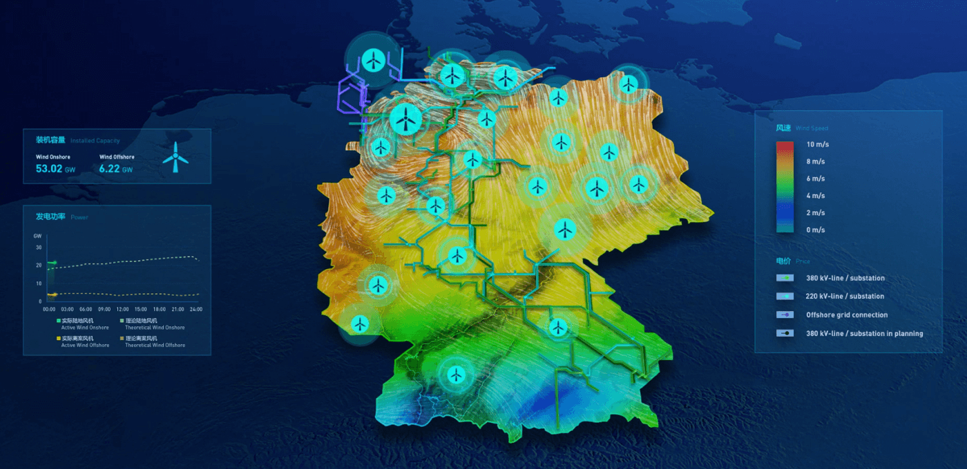 根据客户提供的数据和线下的使用场景相结合,并拥有全方位的数据转化图形化能力、完全自由的创造力与状态逻辑动画和即时实现交互性,并实时交互等当今前沿技术。
