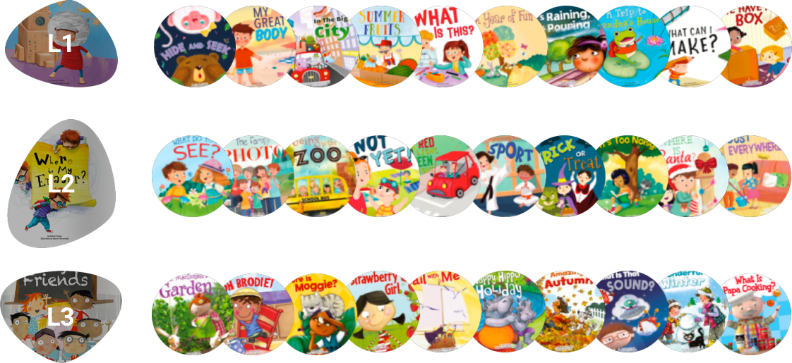 全套书 共33个主题,均结合孩子熟悉的日常生活场景而编排,每个级别的内容基于同一个主题、难度螺旋式上升,符合孩子的学习成长路线。