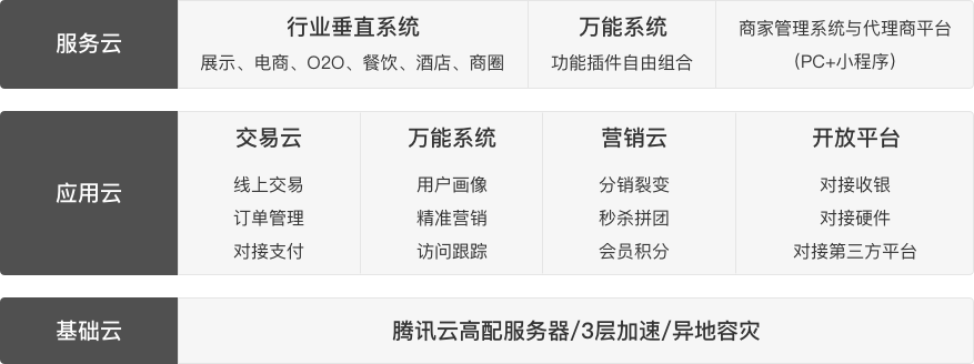 面向商业综合体、新零售商超、助力打造跨界经营新物种(融合各版本功能,全行业通用)。