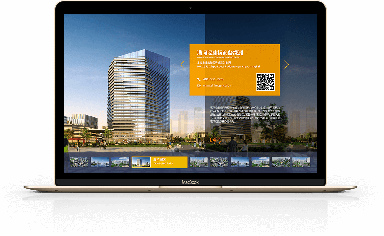 园区展示模块是临港集团极为重视的一块,园区的展现形式以及交互形式直接影响到用户对临港集团和者园区的评价,用户通过页面对集团有了初步了解过后,能否从感兴趣的园区页面中获得直接有效的信息也是极为重要的一点,我们针对用户的使用场景以及使用习惯进行了反复实验与验证,最总以翻页加滚动窗口的形式展现园区模块,用户可以通过滑动浮动模块选择自己感兴趣的园区,选中后页面会显示该园区的基础信息,如果用户需要进一步了解,直接点击进入了解详情即可。