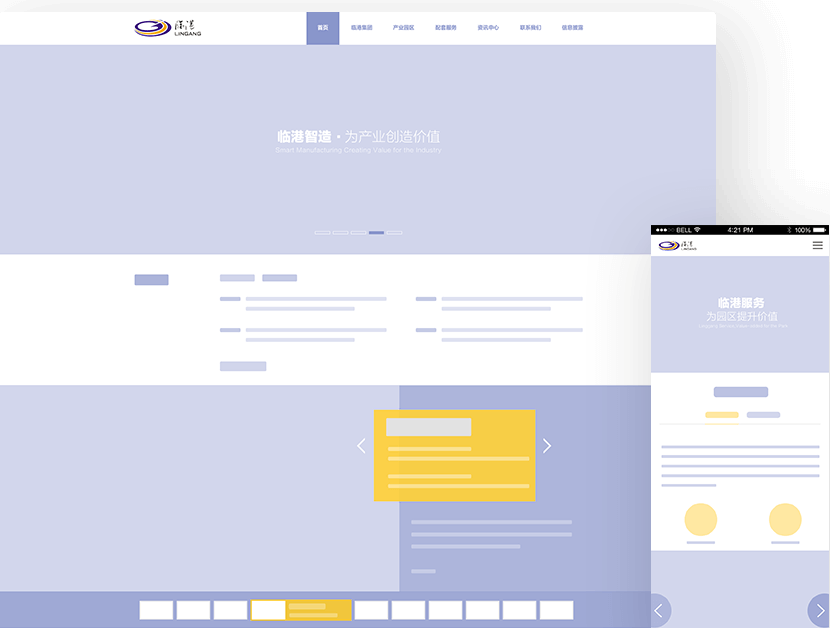 在设计探索阶段,根据临港集团当前信息化状况的研究,以及对竞品和对国内外优秀网页设计的研究,我们将网站整体风格定位为简约风格,同时适配多种移动端,让用户可以通过多渠道了解临港集团,为临港招商引资奠定互联网基础,提升品牌形象与品牌辨识度。频道展现清晰明了,方便集团统一管理