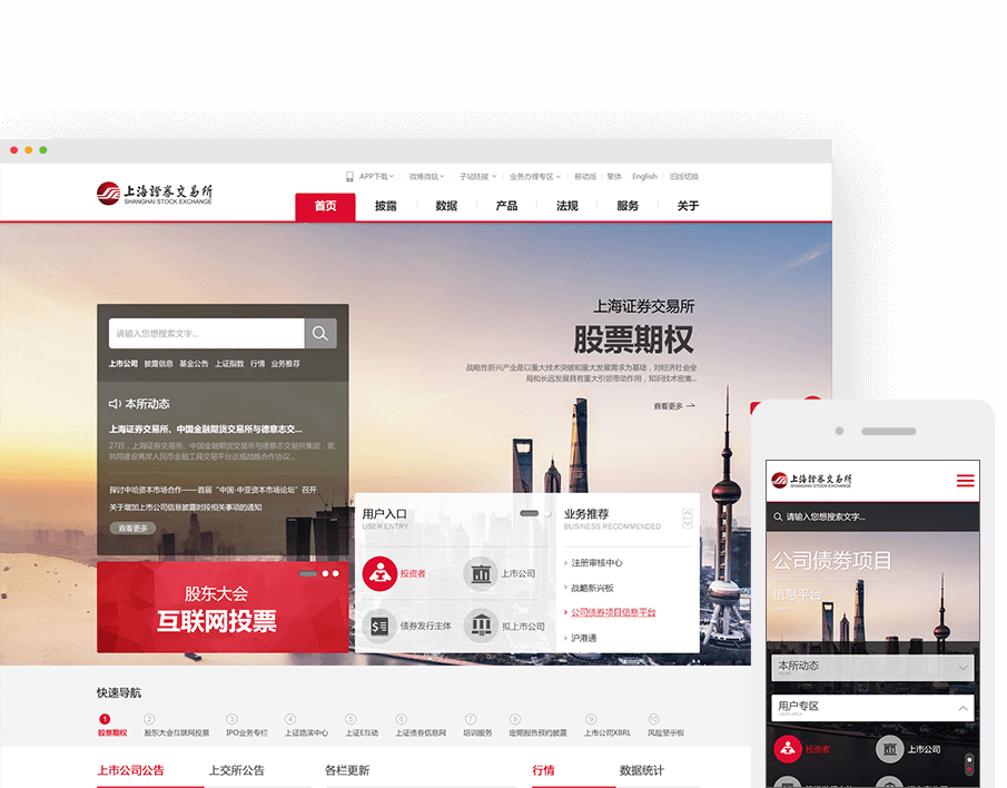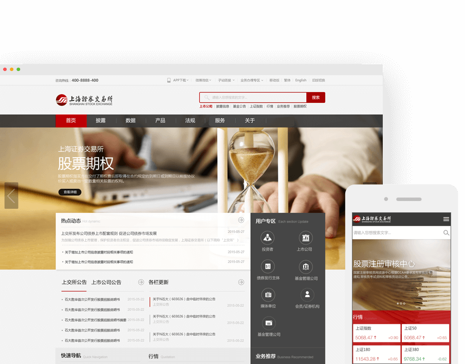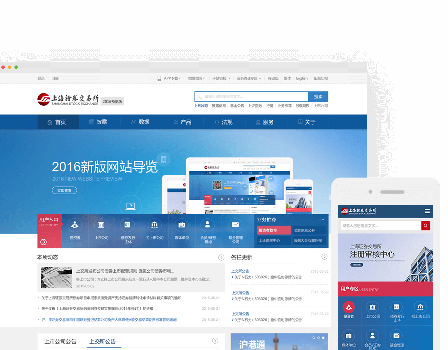 通过2015年改版,对上交所网上服务资源进行系统性梳理,从各类用户视角对服务资源进行重构,实现上交所业务在网络平台上的再整合与集约化;从用户角度出发,对网站内容进行梳理与重构,优化栏目结构和导航体系,提升浏览体验;对网站整体视觉风格进行定制化改造,打造世界一流证券交易所的互联网形象;大幅优化网站功能,重点推出智能搜索、响应式设计、移动APP功能,打造“交易日历”、“上市仪式直播”等若干投资者关心的功能。