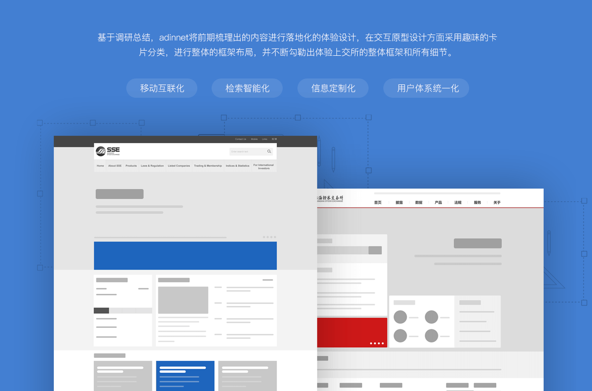 这是国内二大证券交易所之一,首次突破传统架构与界面呈现规则的尝试,也是一个创新有趣,充满碰撞的设计过程。