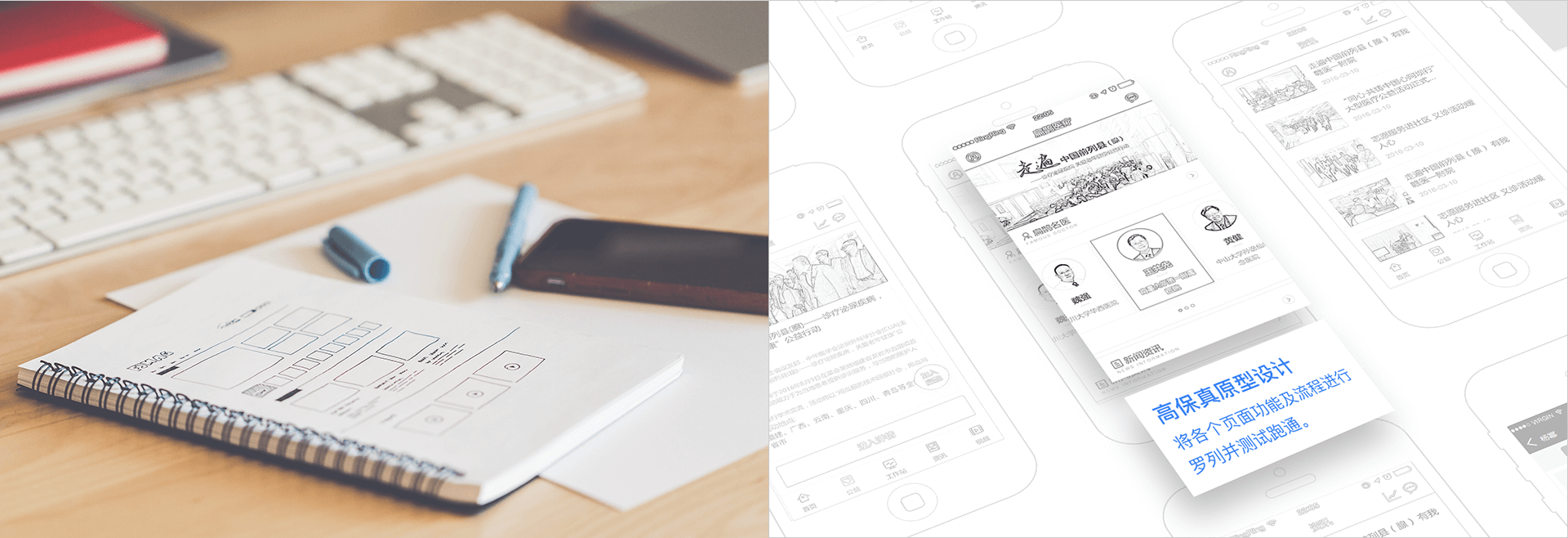 根据前期的用户调研、功能点分析以及用户应用场景反推用户需求,我们将扁鹊名医项目APP进行初步可落交互原型设计, 在产品功能方面尽可能多得去了解客户需求,进行可行性测试跑通流程,从而方便之后视觉设计的进行。