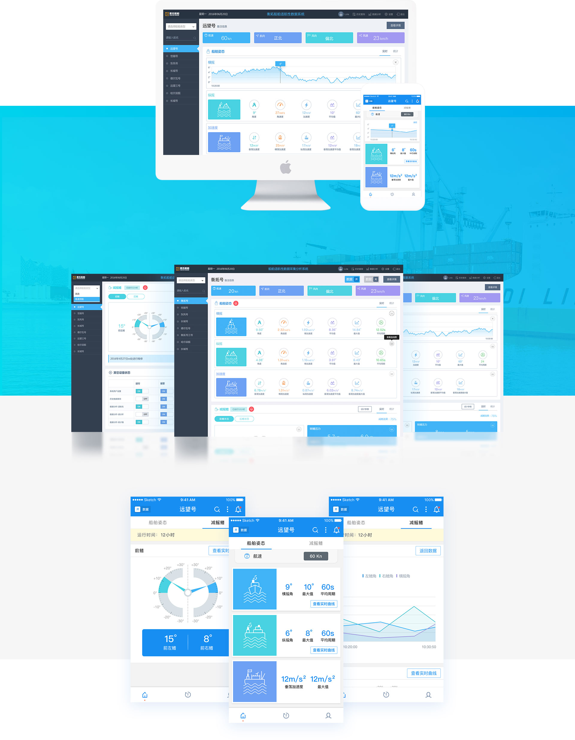 衡拓船舶设计风格采用以天蓝色为基调,象征理智、安全的特点。为用户营造一种“安全清爽”的极致体验诉求。